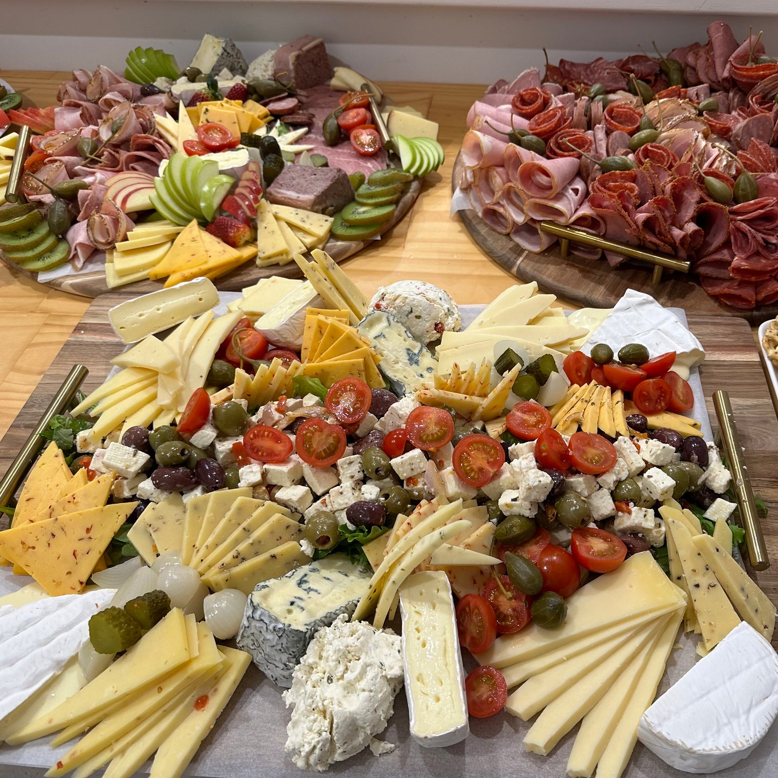 Crem Dal Blu, Fresh Fromage, Brie, Triple Cream Camembert, Cheddar, Swiss, Caerphilly, Feta, Havarti and Gouda with a variety of different flavours across the range.