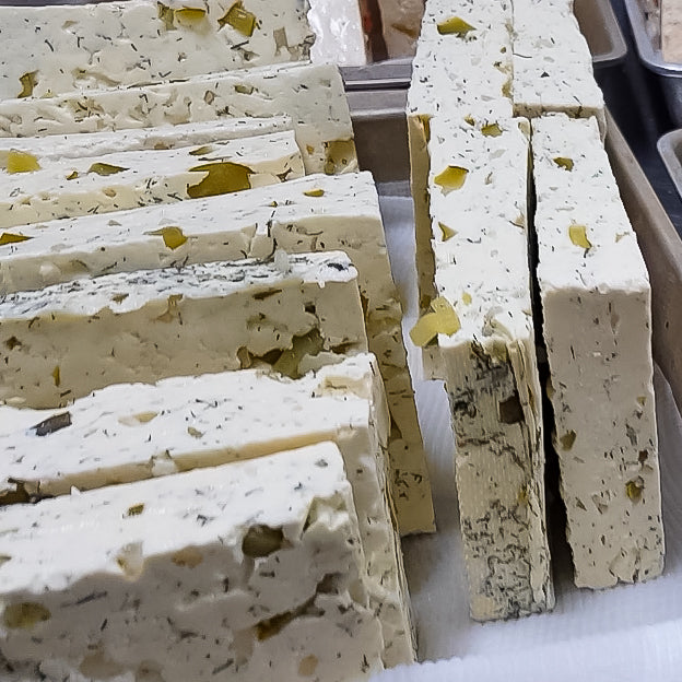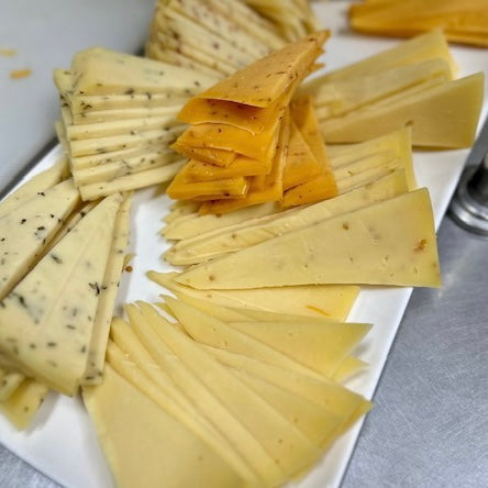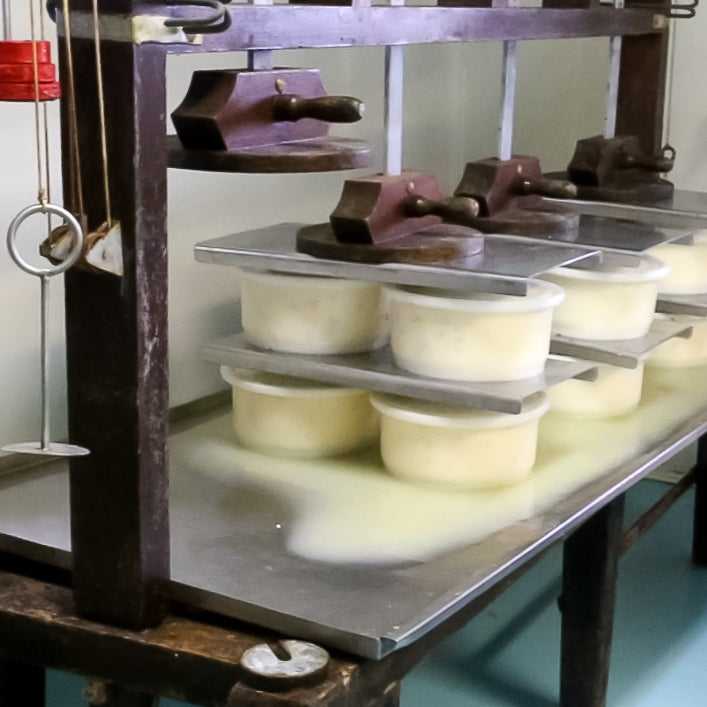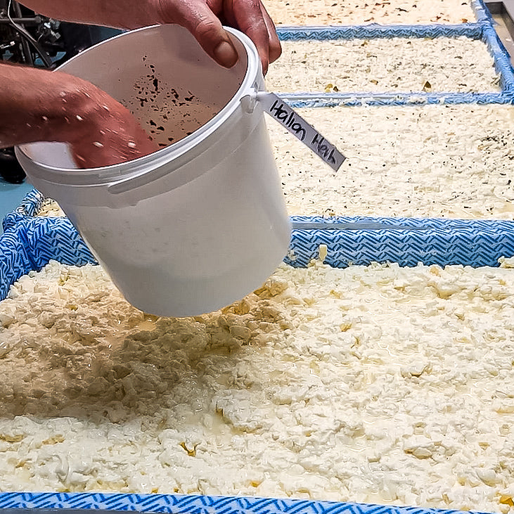 Our Father & Son team of cheesemakers Laurie & Jack Stock make all of our Cheese by hand on site with milk sourced from Hick's Dairy just down the road. It doesn't get much more local than that!